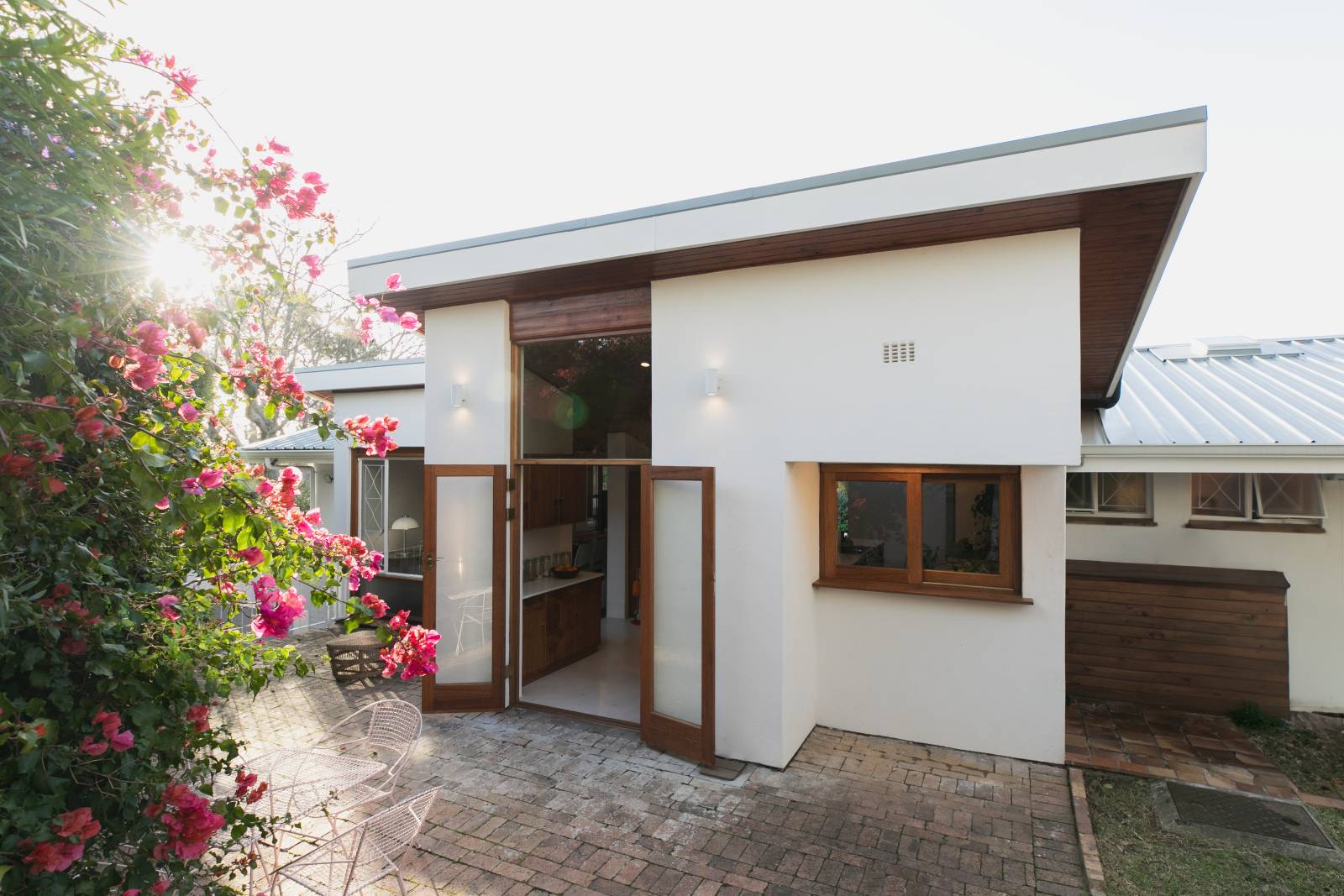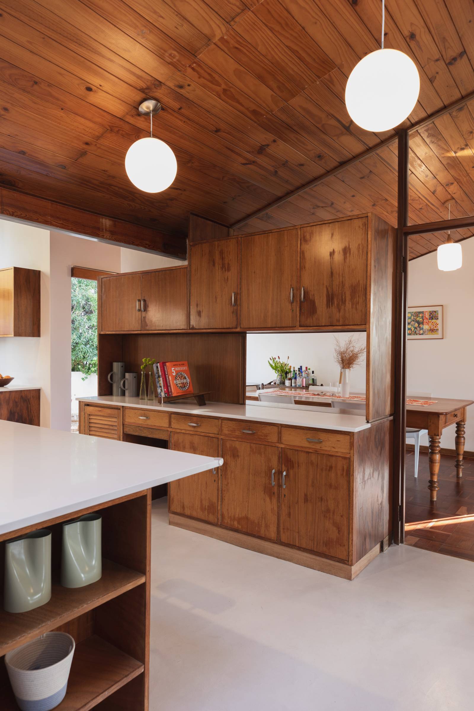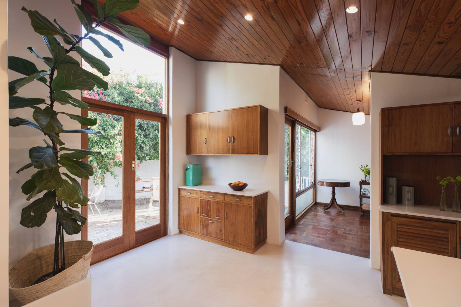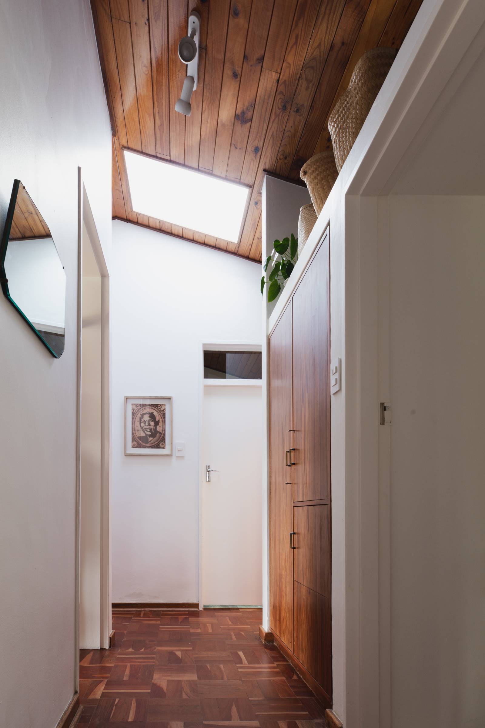 The house had an “inwards” living attitude: a new full length timber doors with toplight in the kitchen creates a connection between inside and outside. Furthermore, this helped get more natural light into the house. Strategically placed skylights aid this – one in the kitchen and one in the passage. The long, dark passage is now pleasant: a floor-to-ceiling opening in the passage creates a sense of connection and continuation between the two arms of the passage. These are just some of the many minor interventions done to the house – small interventions, big results.