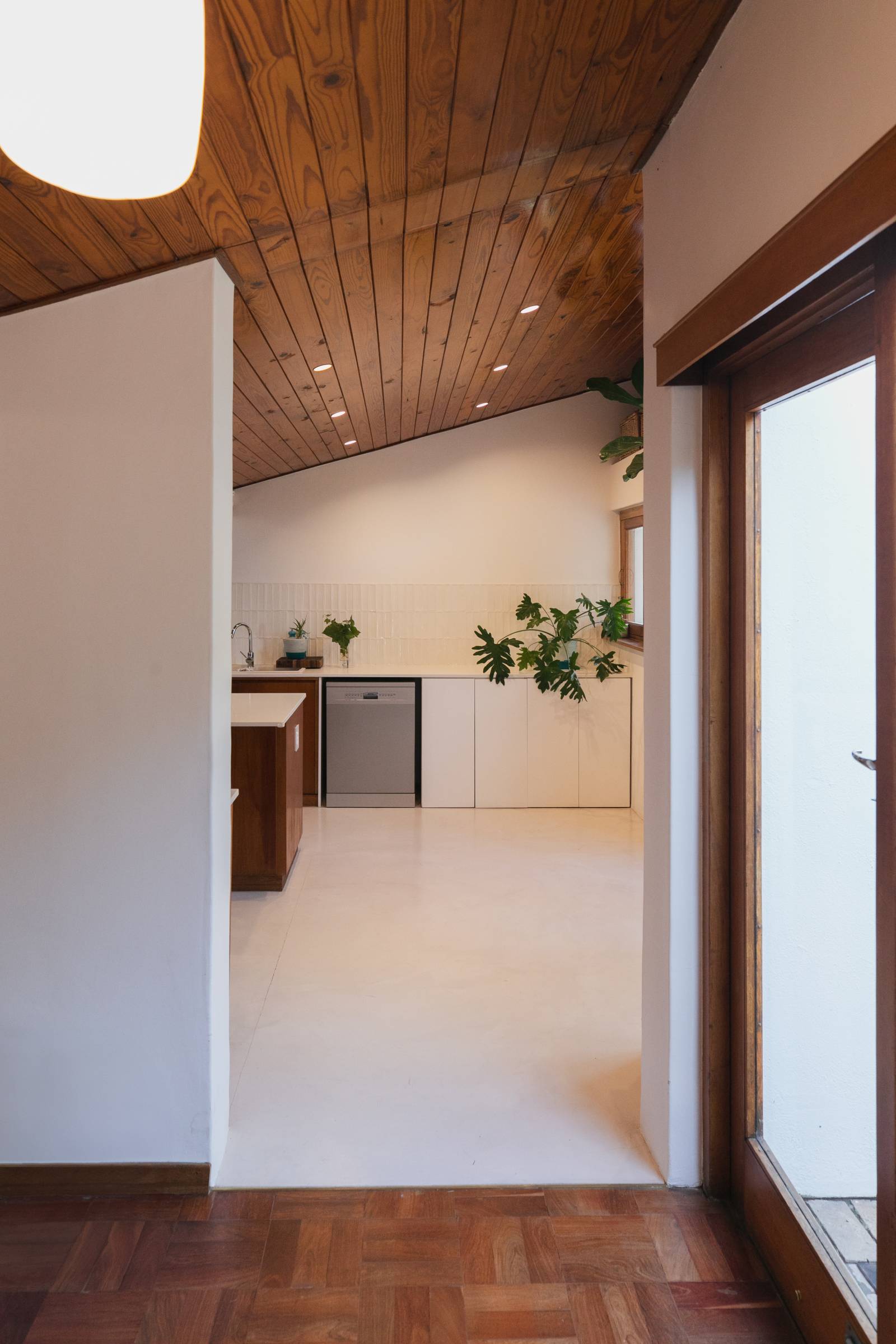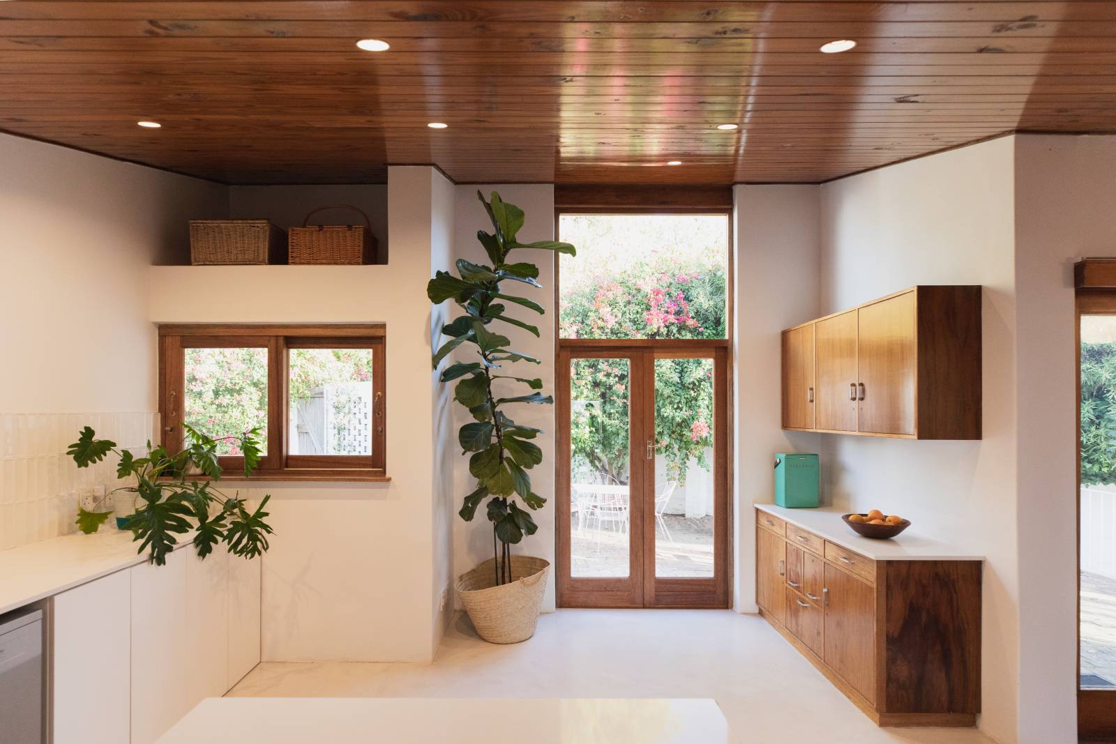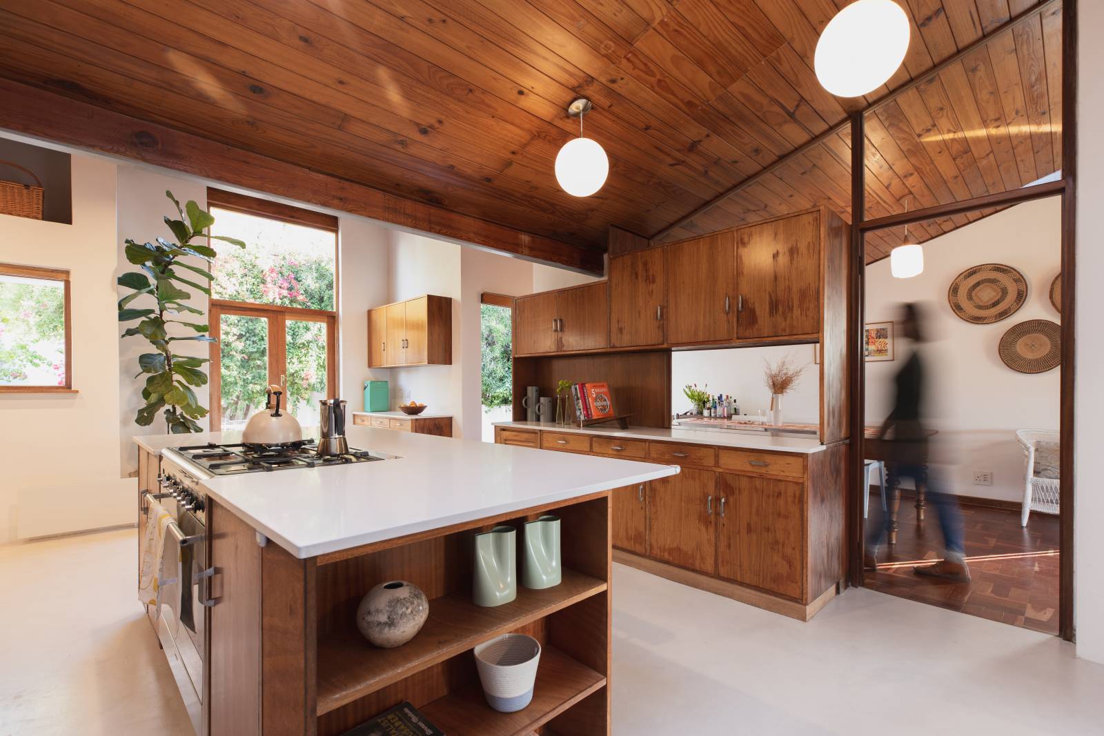 The house had an “inwards” living attitude: a new full length timber doors with toplight in the kitchen creates a connection between inside and outside. Furthermore, this helped get more natural light into the house. Strategically placed skylights aid this – one in the kitchen and one in the passage. The long, dark passage is now pleasant: a floor-to-ceiling opening in the passage creates a sense of connection and continuation between the two arms of the passage. These are just some of the many minor interventions done to the house – small interventions, big results.