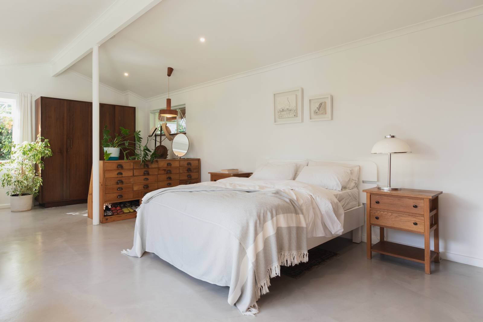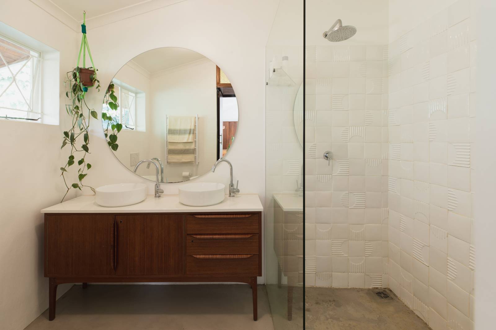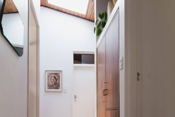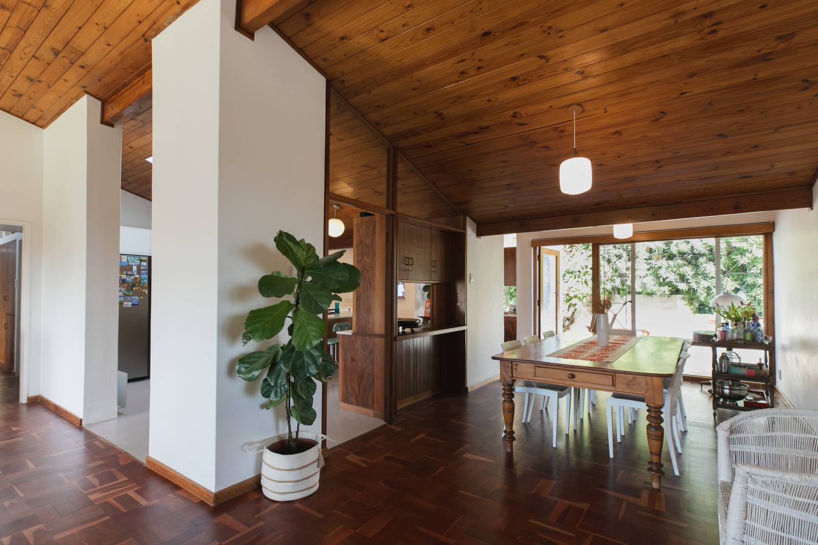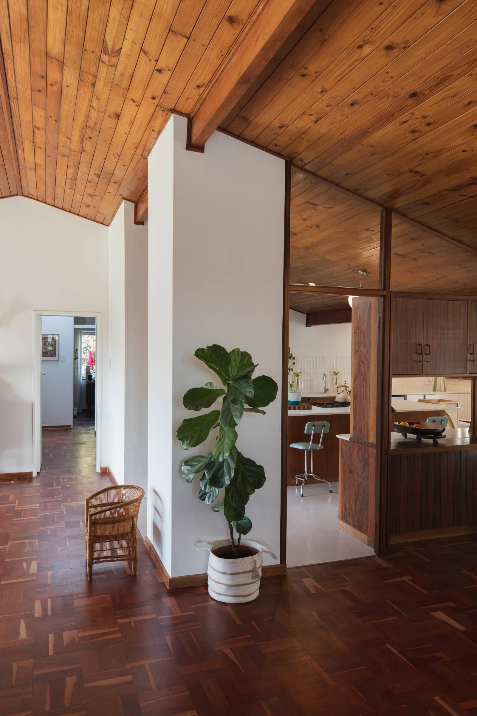 The house had an “inwards” living attitude: a new full length timber doors with toplight in the kitchen creates a connection between inside and outside. Furthermore, this helped get more natural light into the house. Strategically placed skylights aid this – one in the kitchen and one in the passage. The long, dark passage is now pleasant: a floor-to-ceiling opening in the passage creates a sense of connection and continuation between the two arms of the passage. These are just some of the many minor interventions done to the house – small interventions, big results.