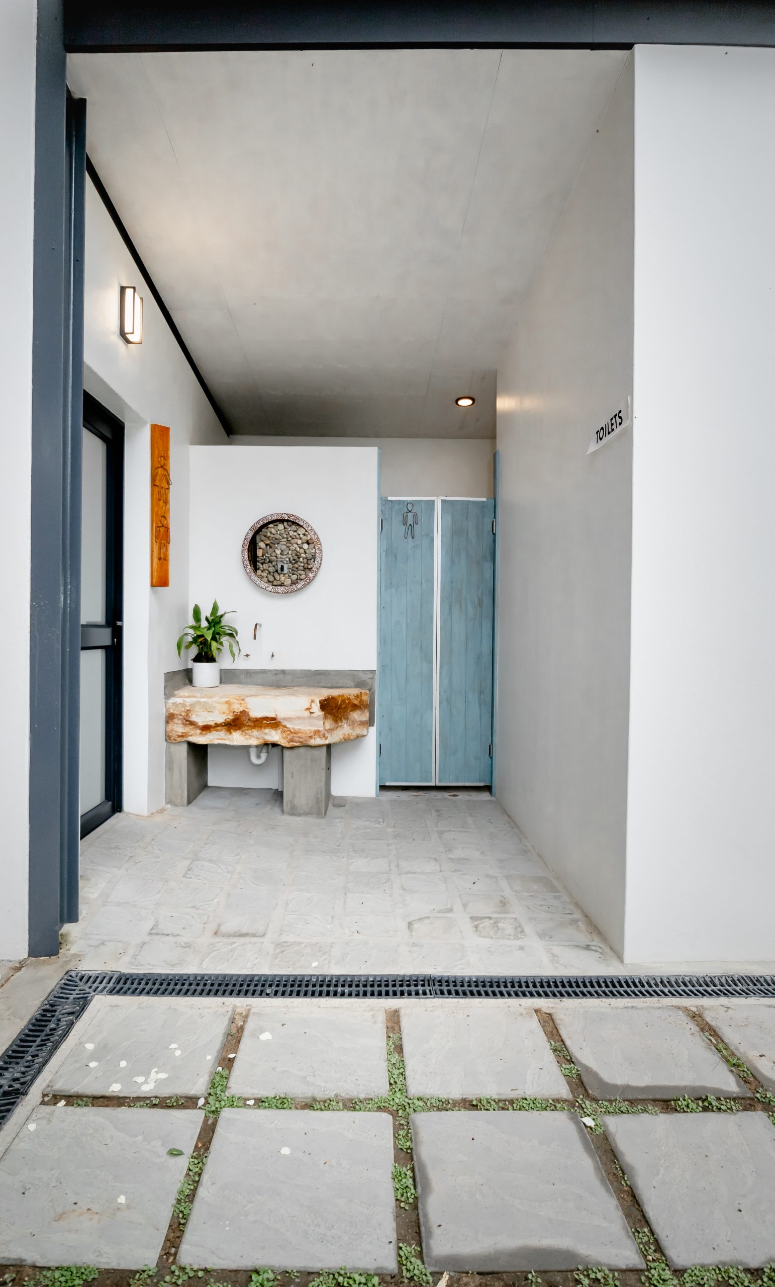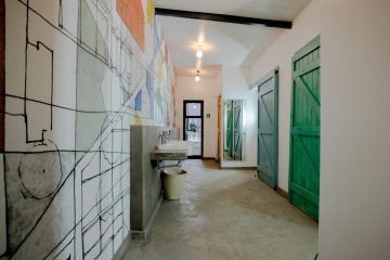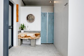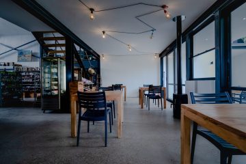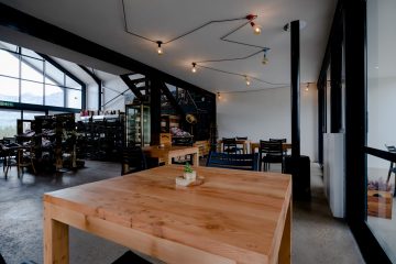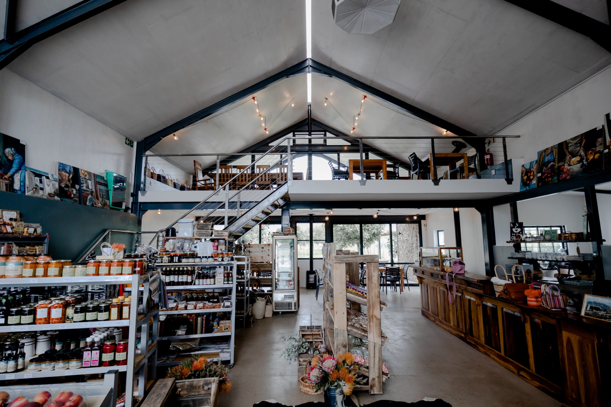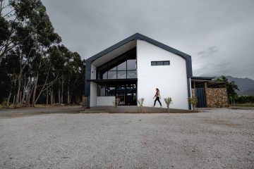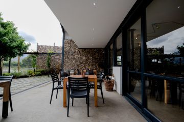 Set between the Witzenberg and Slanghoek mountains, the building is snuggled between vineyards, gumtrees and the R43 road. The double volume steel “shed” structure forms the core of the building: uninterrupted and clean space for the farm stall and restaurant, as the “wet services” have been pushed out to the flanks. The kitchen leads off from the long serving counter and the bathrooms are placed on the opposite side, accessed from the stoep. This allows for uninterrupted wall space for shop displays and mountain views through the full-length windows set back at the gable ends of the building. This functionality meets passive design principles and helps create a green and sustainable building.