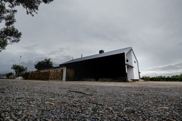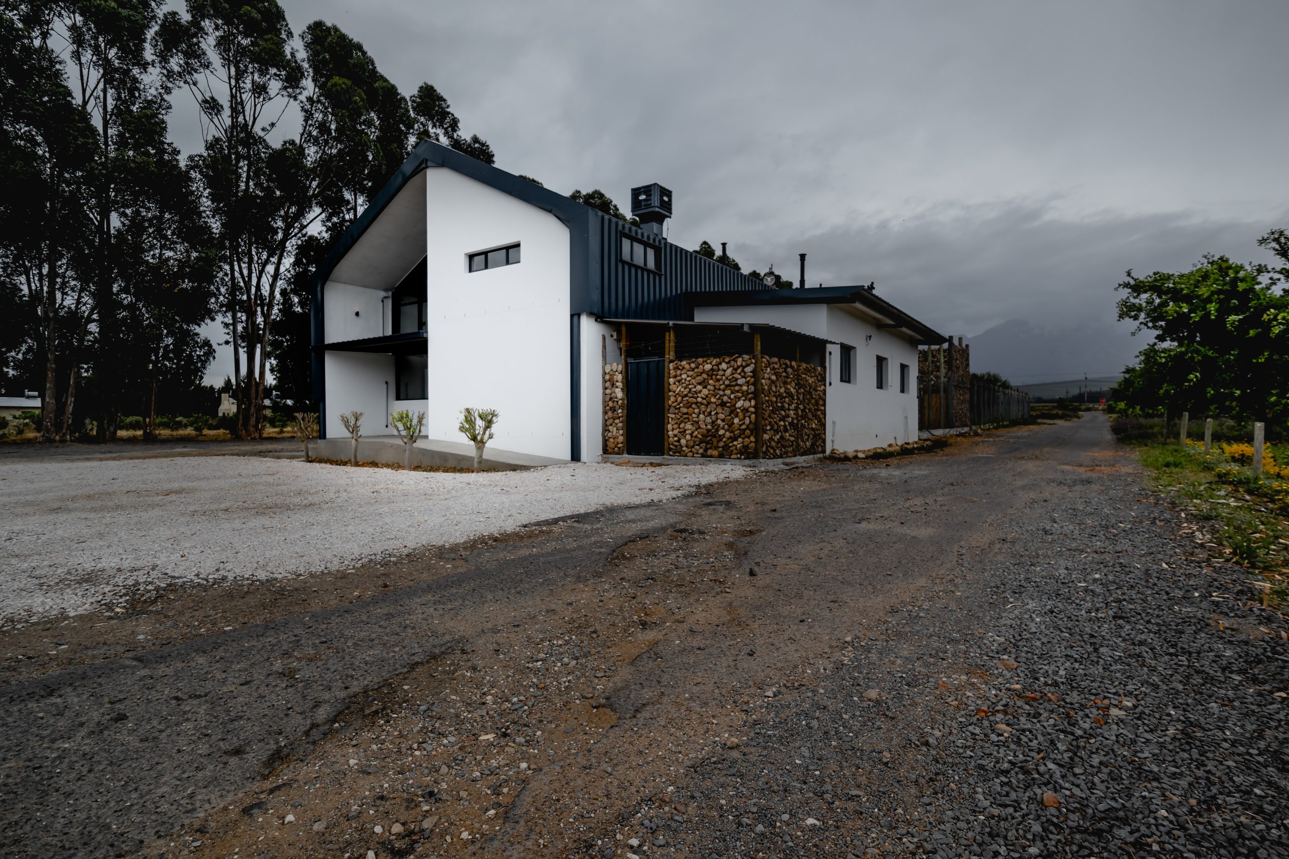 The new home for the farmstall is a contemporary interpretation of local farm shed vernacular, infused with modern day functionality, simplicity and a locally inspired materials palette. The new building draws inspiration for its grounded and heavy stone walls from the stones found in the surrounding winelands (often used in low werf walls and shed walls of by-gone days), and its industrial light-weight roof covering from the shed aesthetics of the Breedekloof farms.
